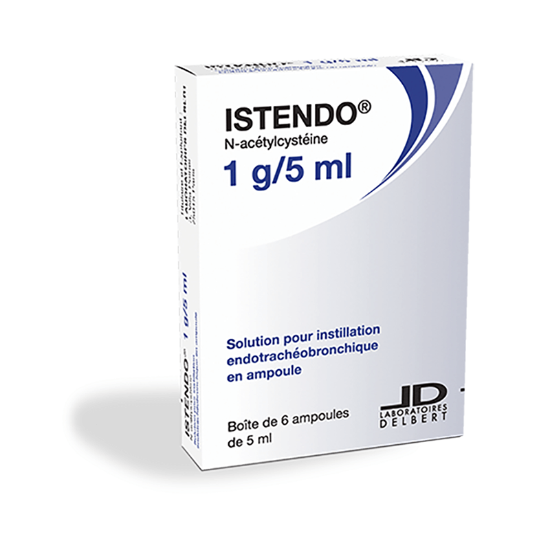 ISTENDO® 1g/5ml. Solution for endotracheobronchial instillation in ampoule. Box of 6 ampoules.